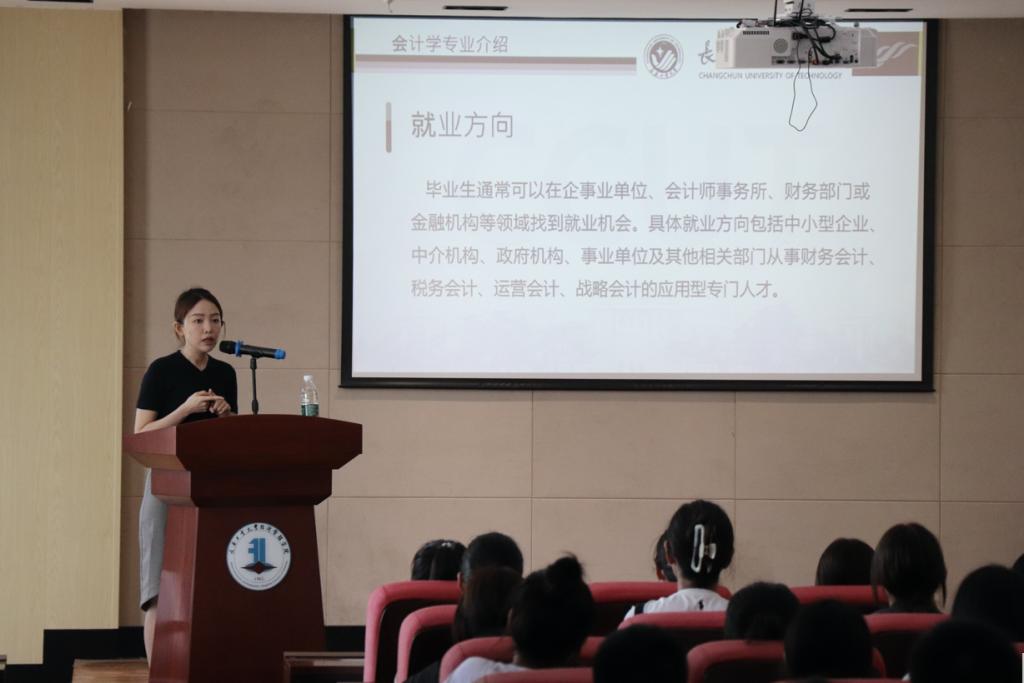 首先,李佳蔚对2024级新同学的到来表示热烈欢迎。从会计学专业建设情况出发,阐释了会计学专业的人才培养目标。并对2024级本科人才培养方案进行了解读。介绍了主要核心课程,并为新生提供大学学习建议,希望同学们成为国家和社会需要的“智财型人才”。其次,以“以赛助学,以学促行” 为题鼓励同学们踊跃参加国际、国内各项学科竞赛,积极参与学校、学院举办的各项活动,促进自我价值提升。最后,她希望同学们在未来的四年中,做好规划、夯实行动,培养技能,打造健康体魄和积极心态,鼓励大家在前行的路上不断思考未来方向,综合考虑专业的市场需求、职业前景,做好就业规划。