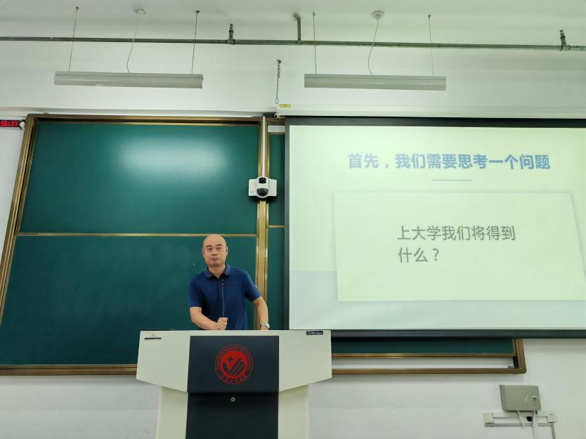 会上,王明昊老师首先引导新生思考上大学的意义,指出大学将带来知识获取与专业发展、个人成长与素质提升以及职业发展与未来规划等多方面的收获。