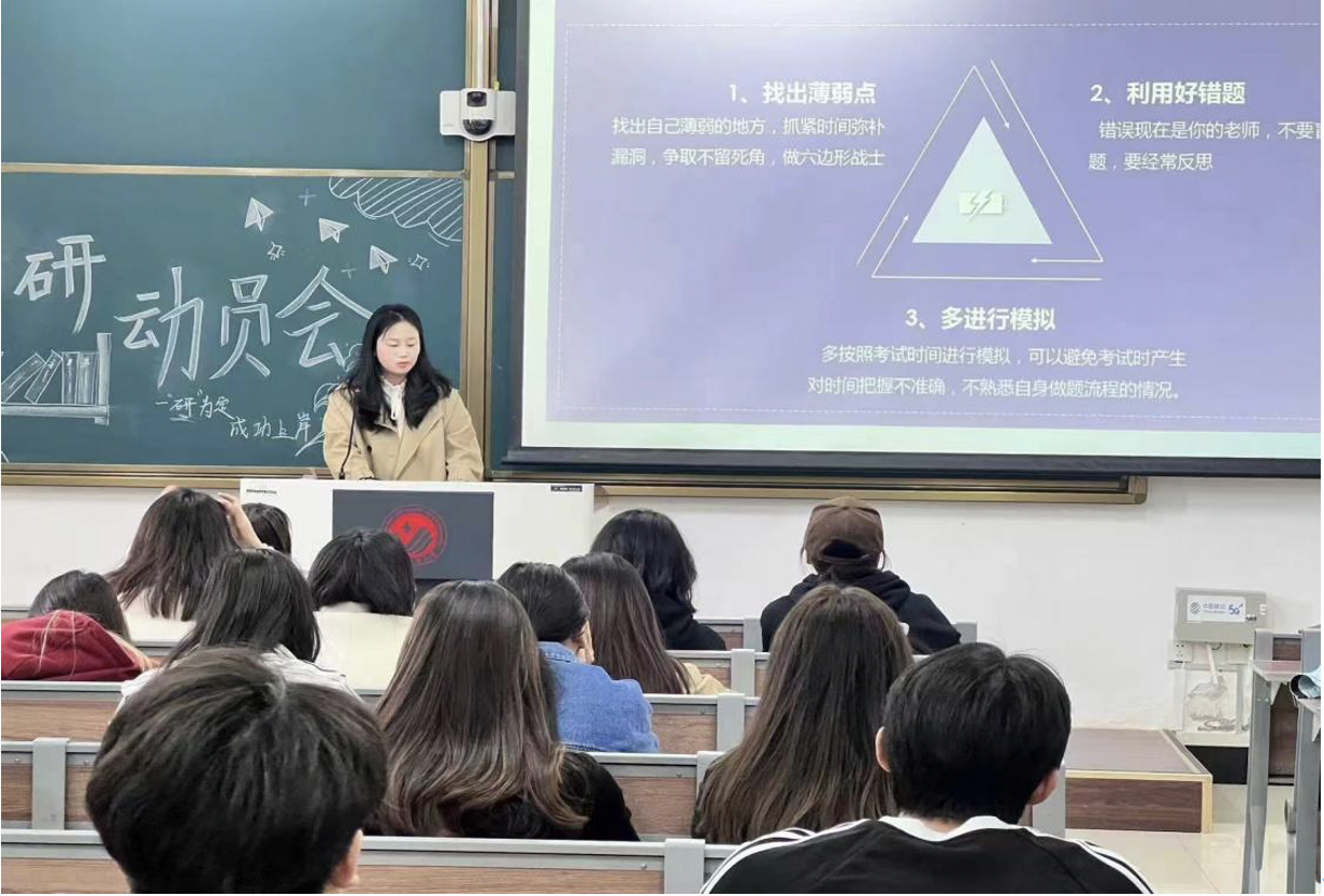 公司网讯(通讯员 樊征明)为加强会计人才培养,帮助同学们认清考研形势、明确考研目标、坚定考研信心,2024年10月8日中午,我系顺利召开大四员工考研动员大会,学院副经理刘慧、财会系副主任李佳蔚,与全体大四会计学子共聚一堂。