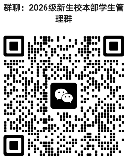 为便于新生管理,请临床医学、预防医学、口腔医学、医学影像学、医学检验技术5个专升本层次的学生及时扫描二维码,加入“2026级新生校本部学生管理群”。其他专业学生等待后续通知。